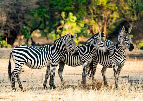 Photo of a group of zebras observing their surroundings.